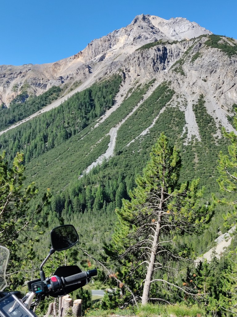 Usciti dalla Dogana La Drossa alla fine del Tunnel, si gira verso est (destra) e si inizia a salire verso il Fuornpass (Passo del Forno). la vegetazione ed i panorami della vallata sono incantevoli e lo scarso traffico anche nei mesi estivi permette di godersi tutte le curve ma ATTENZIONE AI LIMITI. Gli svizzeri usano il telelaser in abbondanza e non transigono nemmeno un Km/h.
