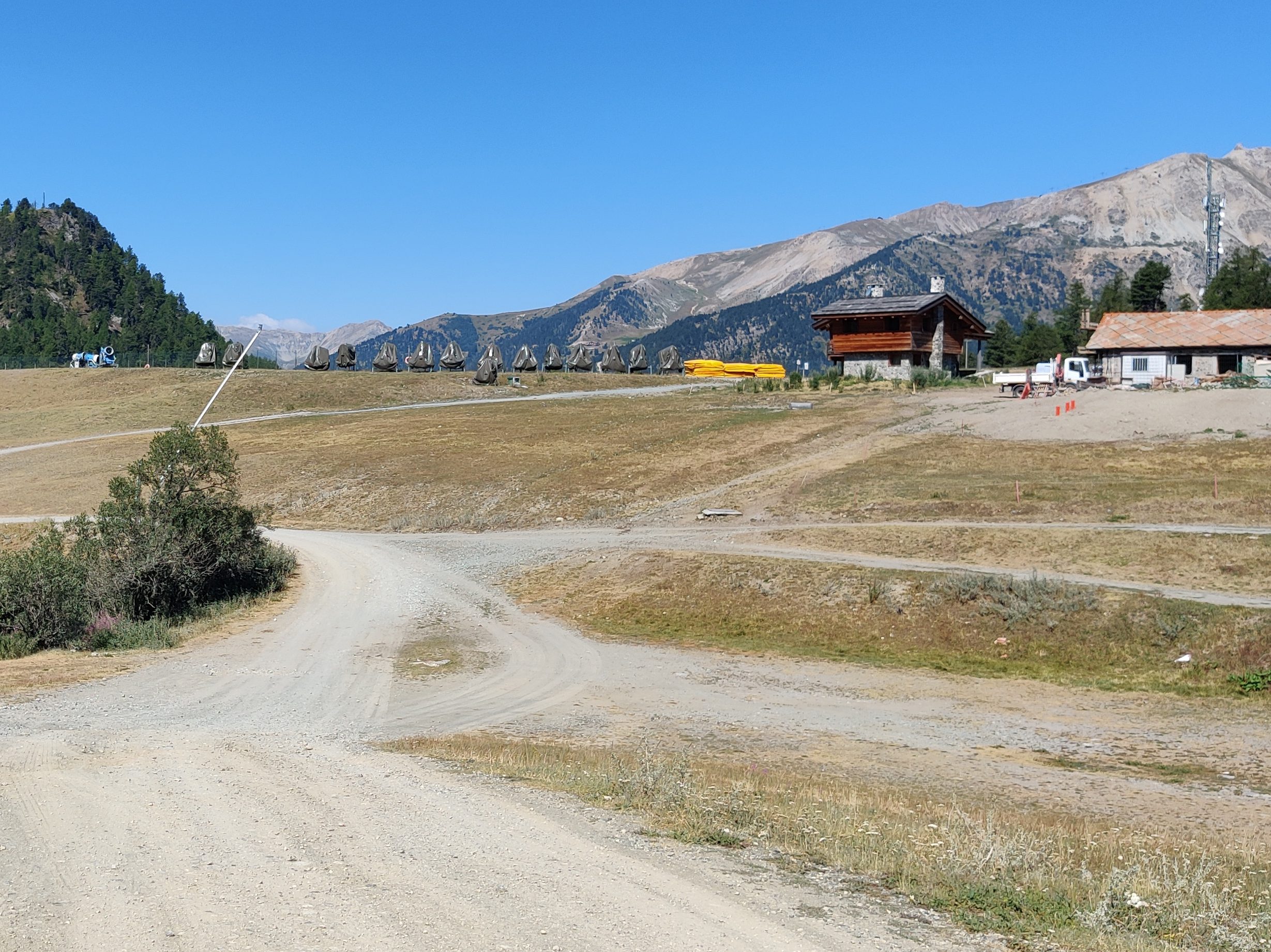 Arrivati quasi al termine del tratto sterrato ci possiamo ristorare alla Baita La Coche che in estate si raggiunge anche in auto ed in inverno con gli sci partendo da Claviere o arrivando tramite il Colletto Verde dal Montginevro.