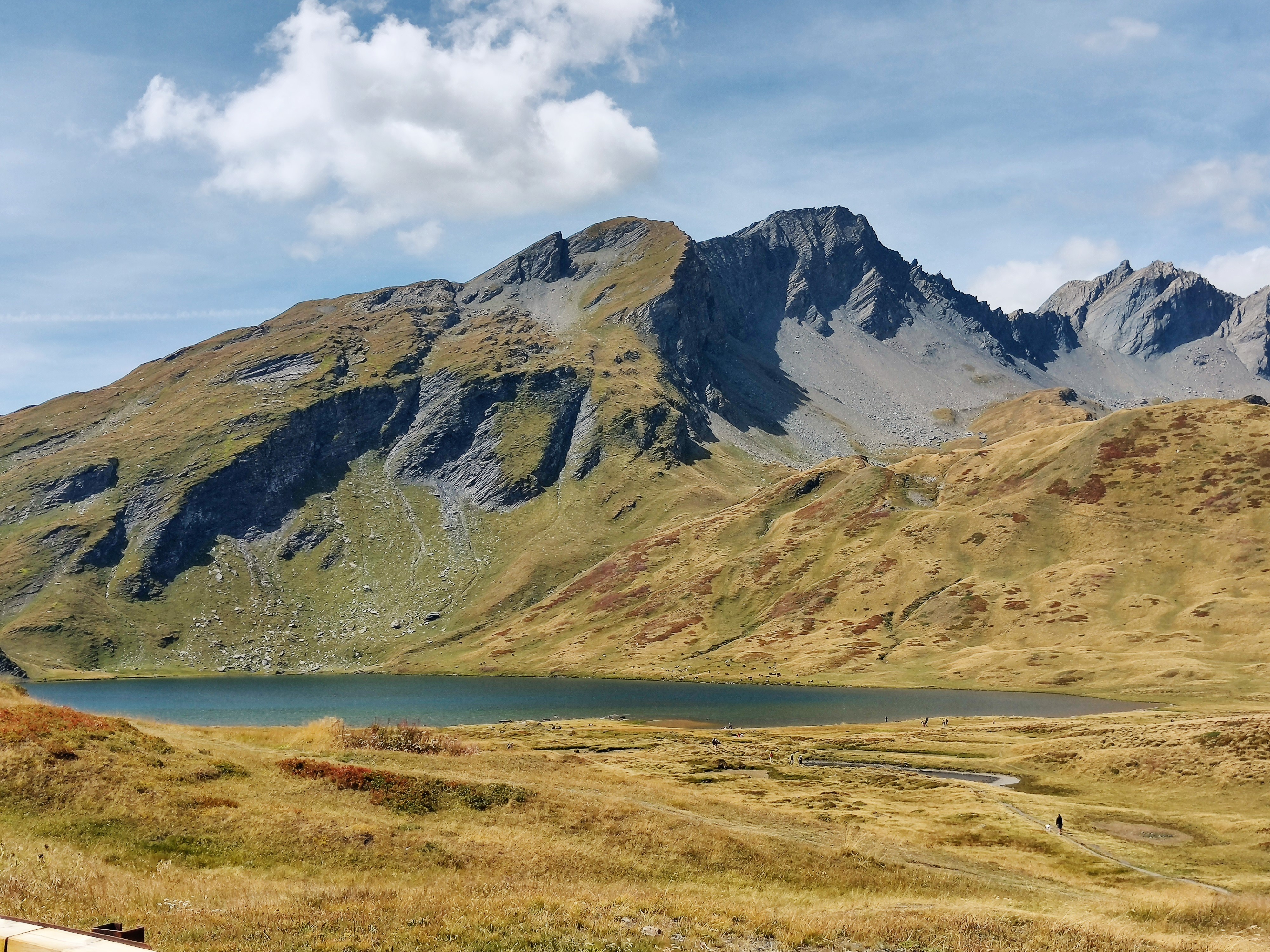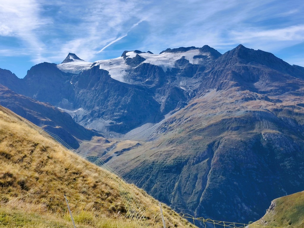 Salendo la ripida strada che porta al colle possiamo ammirare il “glacier des Evettes” sullo sfondo e il monte Albaron, tutti abbondantemente sopra i 3500 m. di altitudine.