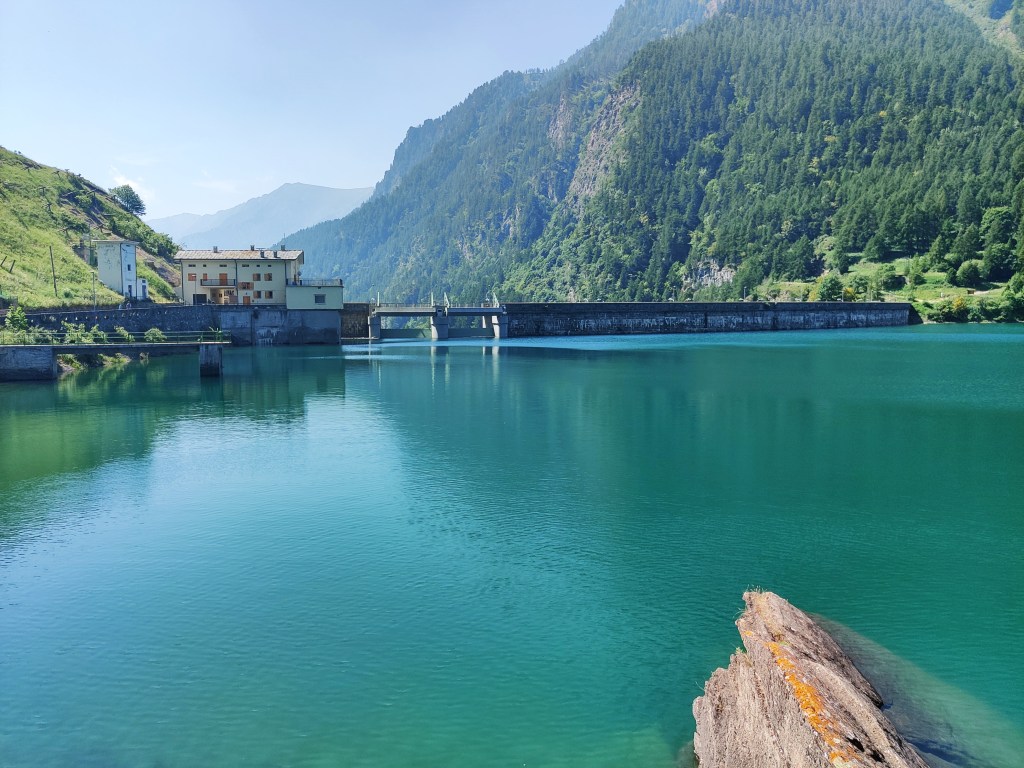 Arrivati in paese a Pontechianale, possiamo ammirare un altro lago artificiale alimentato dal torrente Varaita con la diga verso valle utile all’alimentazione della centrale idroelettrica.