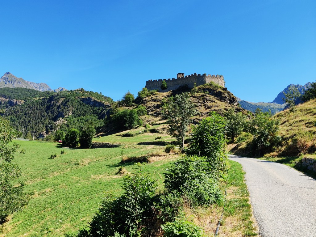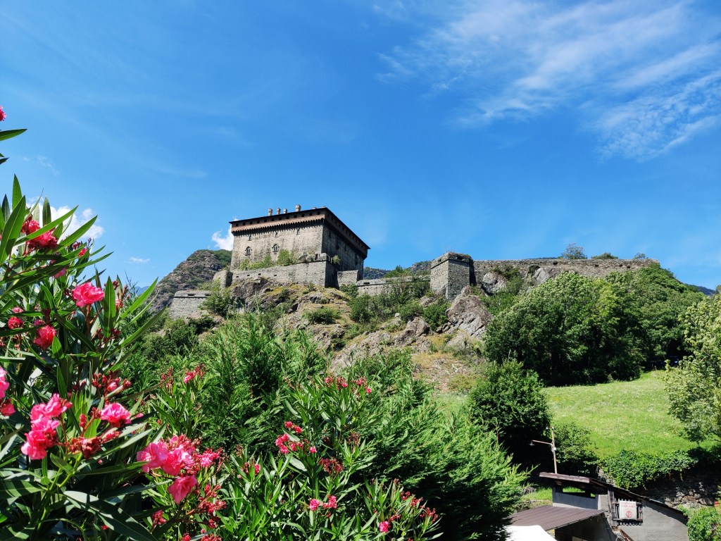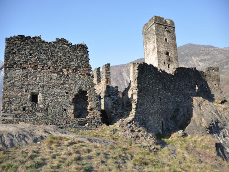 Costeggiamo il castello di Saint-Germain o tour Saint-Germain posto su uno sperone roccioso e che è tra le più grandi fortificazioni della Valle d’Aosta e seppure mostri i segni di rifacimenti vari, fa emergere il tipico schema di fortificazione primitiva valdostana, ossia di Castello Medievale caratterizzato da un’alta torre centrale (alta 19 m e di 6 m di lato) circondata da un’imponente cinta muraria, alla quale sono poi stati aggiunti altri corpi e altre mura in epoche successive. In epoca romana venne scavato nella roccia e definito Mons Jovis oggi costeggiato dalla Mongiovetta, tratto della SS26 della Valle d’Aosta, il castello di Saint-Germain è tra i castelli più strategici della Vallèe.